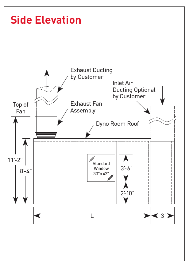 - Interior ceiling height of 8’-0” or 9'-0" ( adequate for both pit & floor mounted dynamometers)