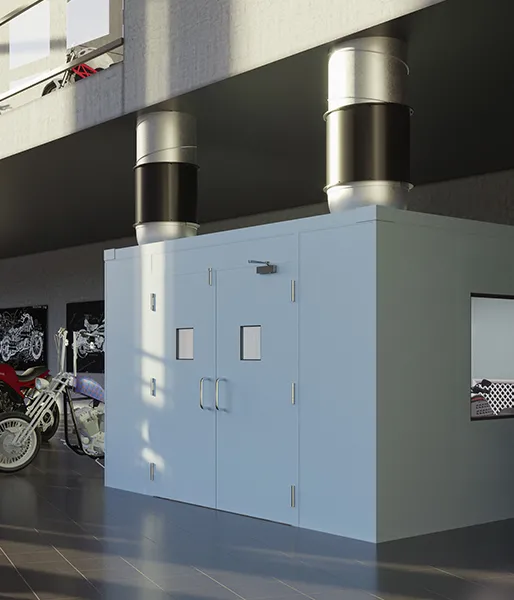 The design of the new line IAC Dyno Shell room delivers a reliable proper ventilation system and has the option to contain noise within the space if the end user needs to comply to noise regulation codes. In addition, The INC Dyno Shell Test Rooms are easy to install, move, change and modify due to their modular design and extremely light construction.